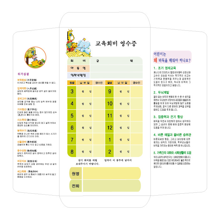 전면은 교육회비 영수증으로서 활용하실 수 있으며,